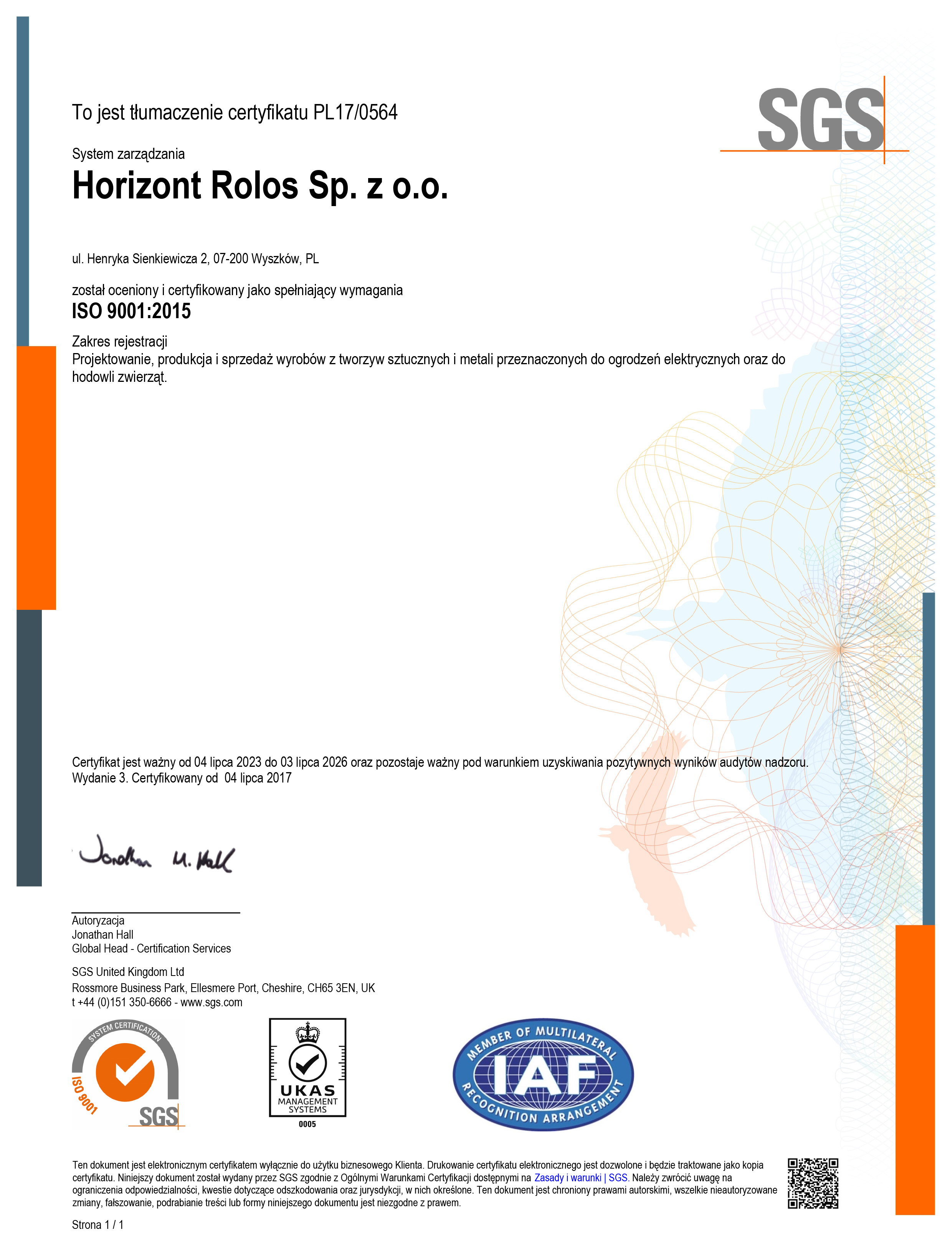 horizont Rolos posiada certyfikat ISO 9001 od 2015 roku. Certyfikacja ta opiera się na kompleksowych działaniach mających na celu zapewnienie jakości produktów oraz na stałych szkoleniach naszych pracowników, których celem jest ciągłe doskonalenie relacji z klientami. Dążymy do zapewnienia Państwu najlepszej możliwej obsługi!